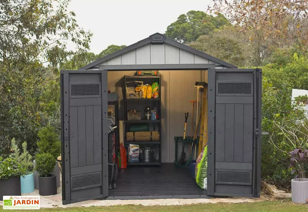 Votre abri dispose d’une double porte de 1,48 x 1,82 m l,(h) avec dispositif de verrouillage en acier inoxydable (cadenas non inclus). Pour un abri vraiment unique, vous avez la possibilité de le peindre (uniquement les murs) avec de la peinture acrylique.