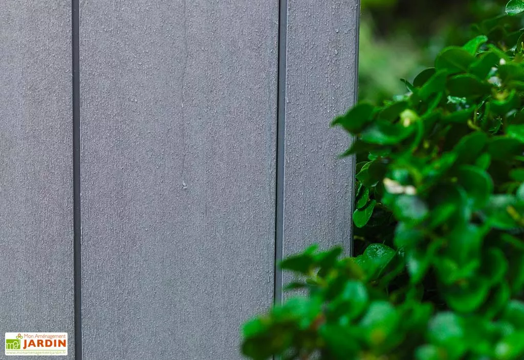 L’abri de jardin est directement issu de la gamme Brossium de chez Keter. Il est en polypropylène extrudé, un matériau qui ne craint pas la moisissure, les insectes ni la rouille. Sa structure est constituée d’une double paroi de 20 mm, traitée contre les UV, avec une armature en acier.