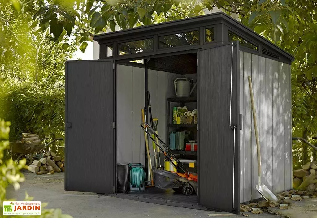• Abri de jardin en PVC et résine