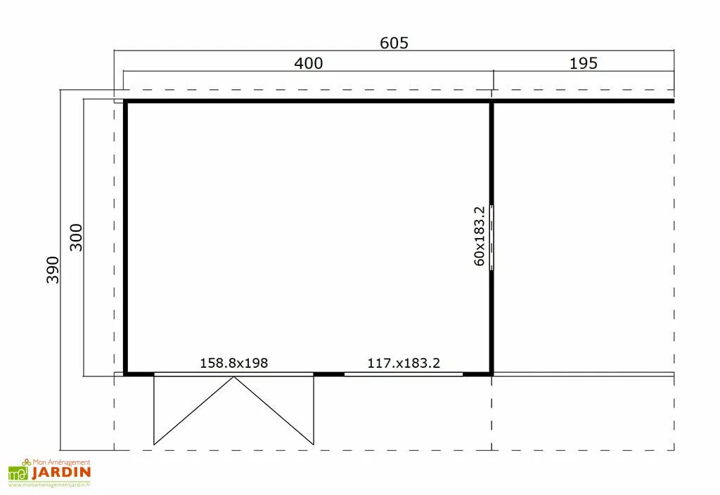 Cet abri de jardin en bois de chez Lasita devient une véritable annexe de votre maison. Avec ses dimensions de 390 x 605 cm, il vous offre à la fois un espace intérieur de 11,39 m² et une partie couverte par le toit faisant office de terrasse de 5,8 m².