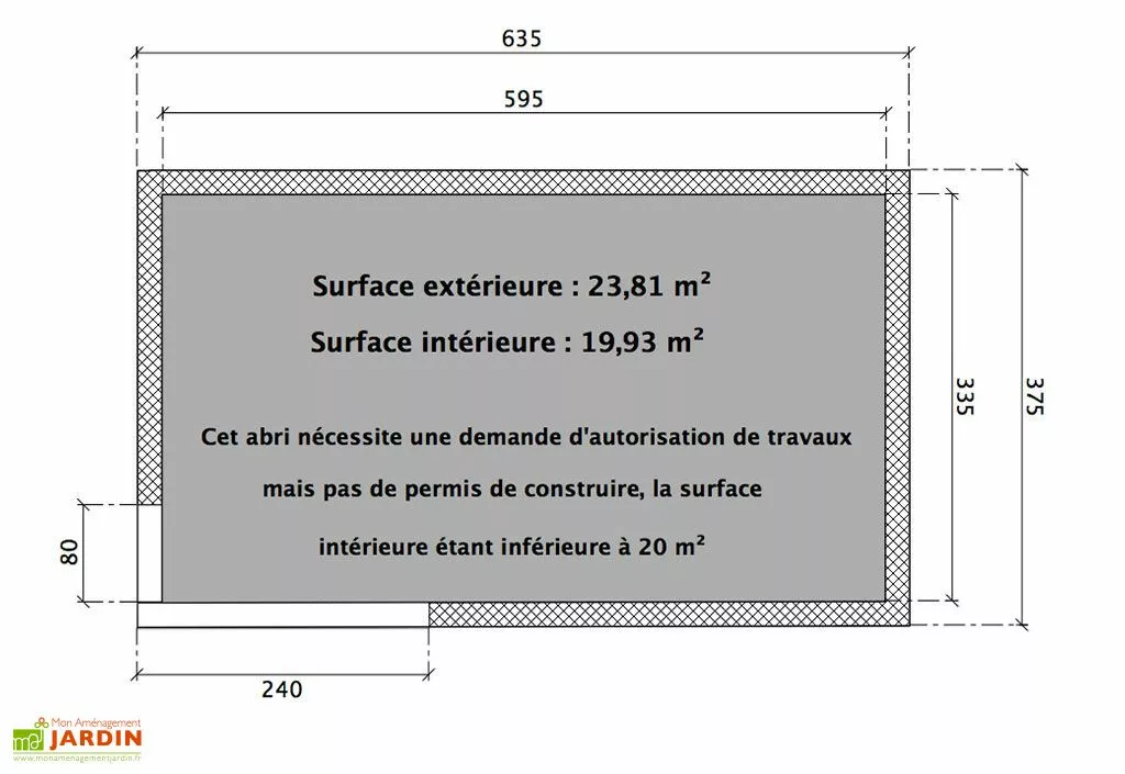 L’abri possède une garantie de 2 ans. Cet abri nécessite une demande d’autorisation de travaux mais pas de permis de construire, sa surface intérieure étant inférieure à 20 m².