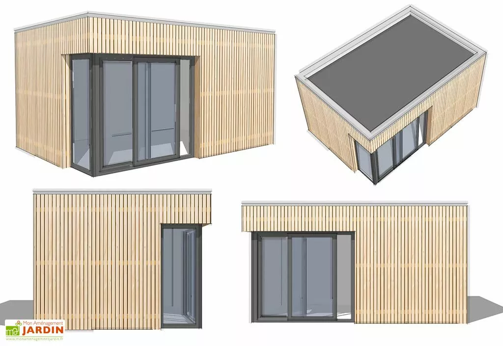Le Bungalow Design Studio (635×375) de chez M² Espace Jardin est livré en kit et peut-être monté chez vous par nos spécialistes moyennant un supplément.