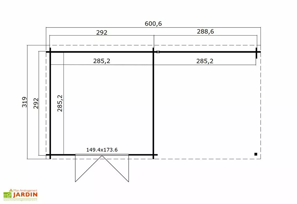 - Hors tout : 601 x 319 cm (l,L) – 19,17 m²