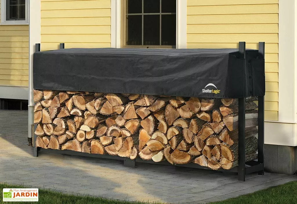 Ce bûcher en métal Shelter Logic vous permettra de stocker votre bois de chauffage proprement et au sec grâce à la bâche en polyester 300D également incluse. Cette dernière pourra être ajustée à la hauteur du bois afin de le protéger de l’humidité.