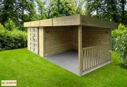 - Si vous choisissez l’abri en bois brut pensez à le traiter avant ou après le montage à l’aide d’un produit fongicide et insecticide. Il sera nécessaire de couvrir environ 45 m².