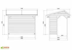 Cet abri pour poubelles mesure 145 cm de large sur 92 cm de profondeur et 95 cm de haut couvercles fermés. Il est fabriqué en pin traité par autoclave, un traitement par imprégnation permettant de protéger le bois des intempéries, et notamment de l’humidité, mais aussi des insectes et autres champignons qui pourraient dégrader sa condition. Ce bois est par ailleurs certifié FSC et provient de forêts gérées de façon écoresponsable.
