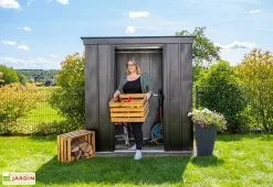Ce cabanon de jardin Spacemaker affiche une finition gris anthracite pensée pour faciliter son intégration dans tous types d’extérieurs. Il est fabriqué à partir de tôle d’acier galvanisé de 0,3 mm d’épaisseur, un métal solide qui ne craindra ni la rouille, ni les intempéries, le tout sans nécessiter de traitement préalable ou d’entretien particulier.