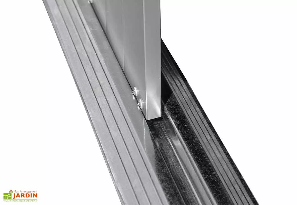 A noter : il est recommandé de monter cet abri de jardin sur une terrasse en bois ou sur une dalle de béton.