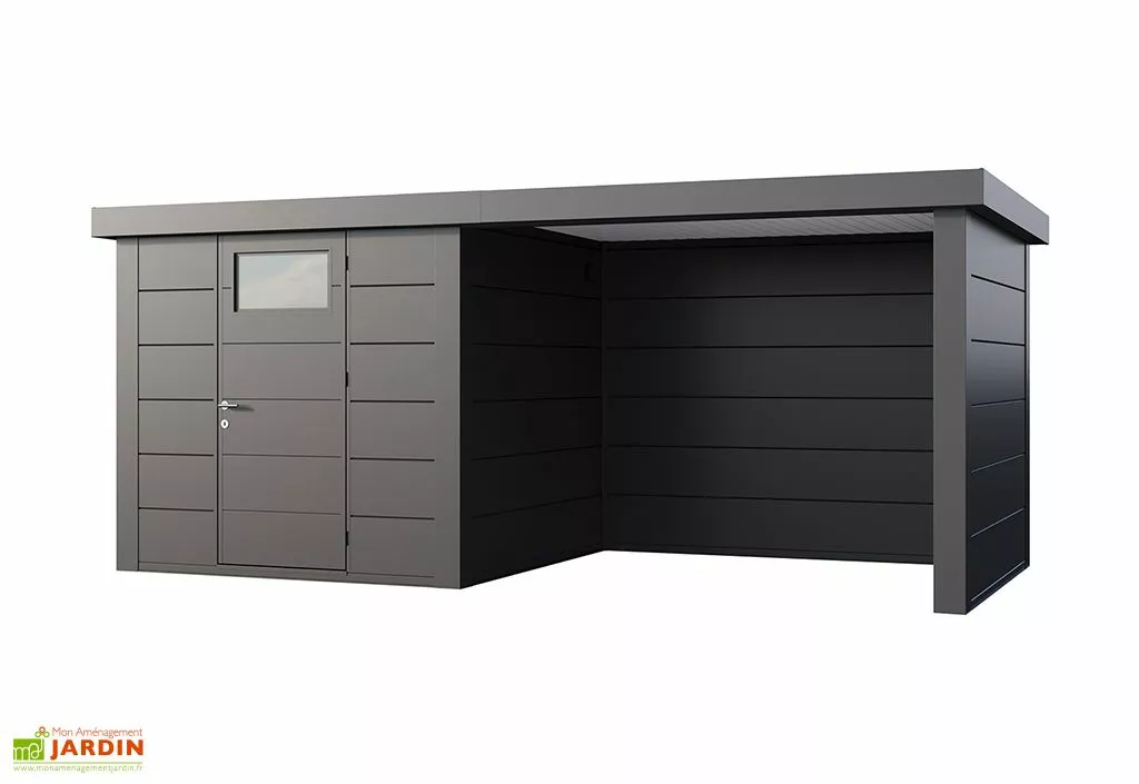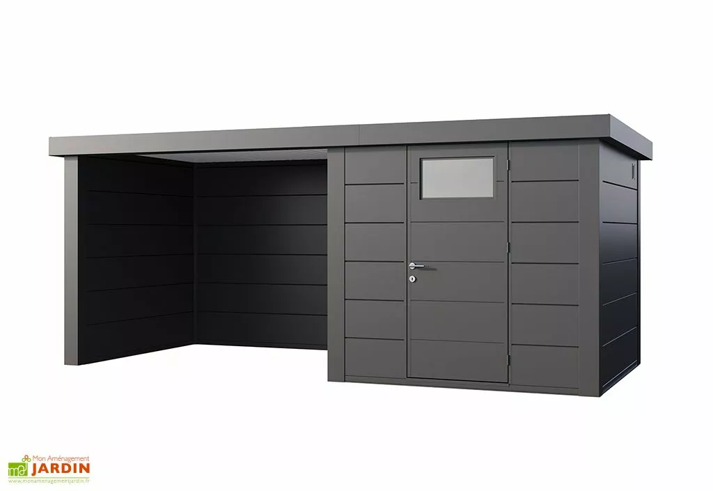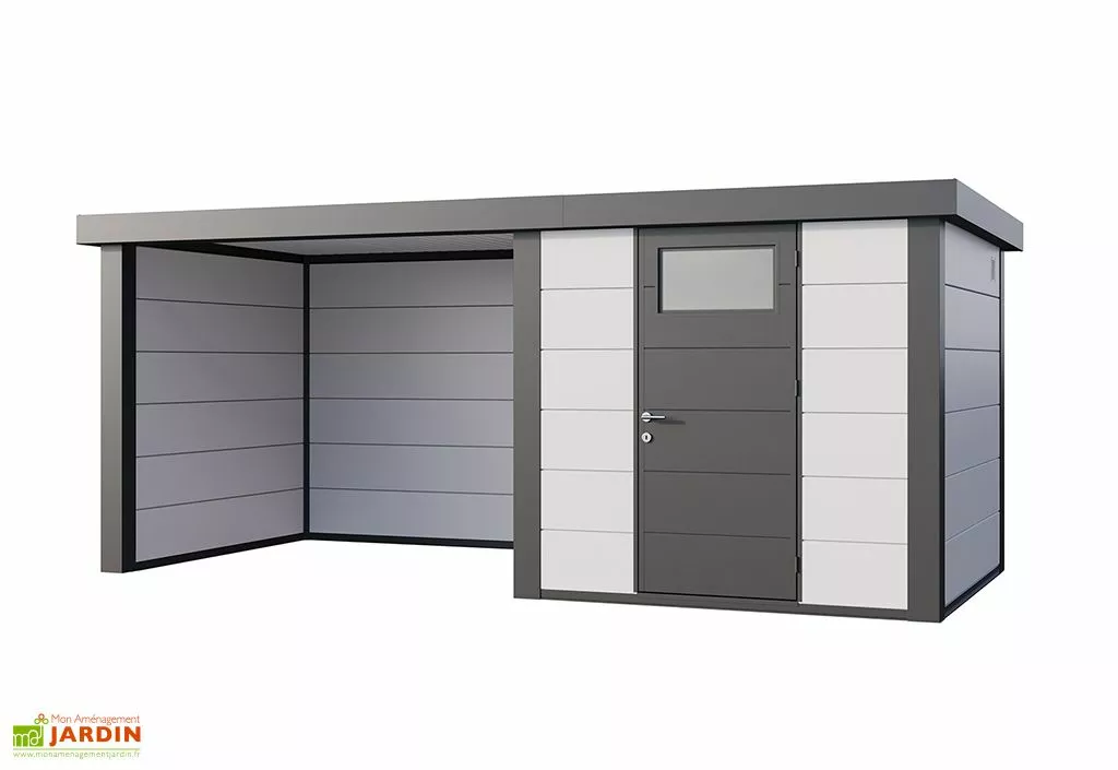 L’abri de jardin Eleganto Lounge de chez Telluria est équipé d’un auvent semi-fermé de 6,8 m² que vous pourrez aménager en y installant un salon de jardin ou qui pourra faire office de garage à vélos, par exemple. Le cabanon de jardin offre pour sa part un espace intérieur de 4,4 m², soit suffisamment de place pour ranger des outils, du matériel de jardinage et autres équipements d’extérieur. L’auvent pourra par ailleurs être monté sur le côté droit ou gauche de l’abri, au choix.
