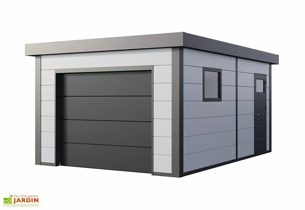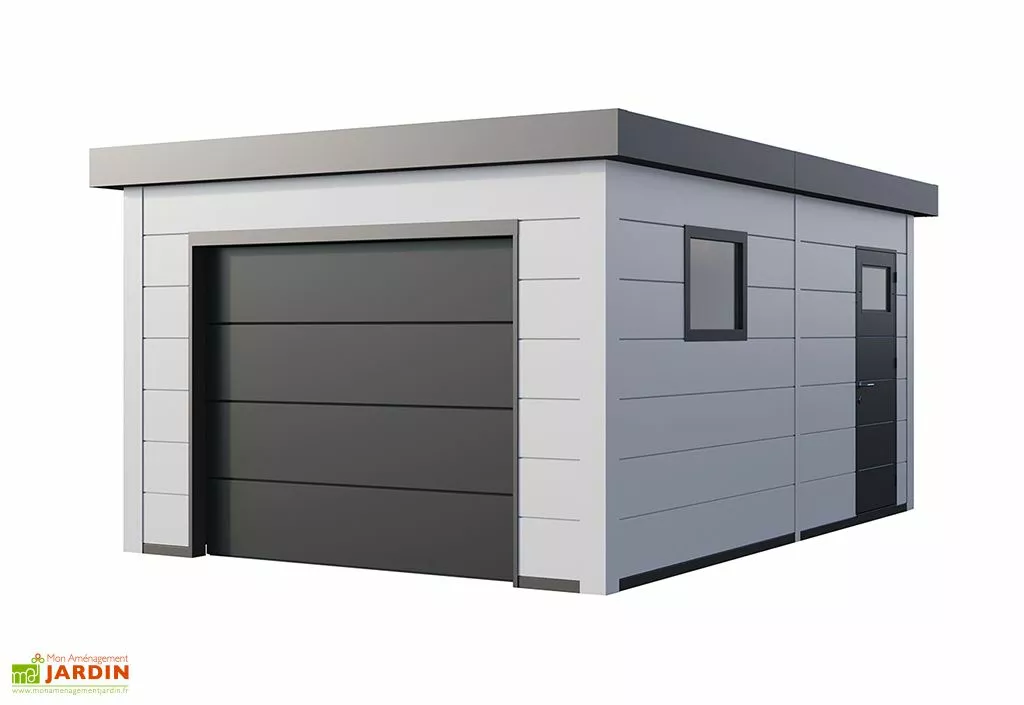 Entièrement fabriqué en acier galvanisé, ce garage pour voiture se montrera très résistant face aux intempéries et autres agressions extérieures sans pour autant nécessiter d’entretien particulier. Il dispose d’une toiture plate composée de panneaux sandwich isolés et équipée d’un système de gouttière avec descente permettant le bon écoulement des eaux pluviales. Les parois du garage intègrent quant à elles une fenêtre double vitrage ainsi que des grilles d’aération afin d’assurer l’évacuation d’éventuelles fumées d’échappement ou autres odeurs gênantes.