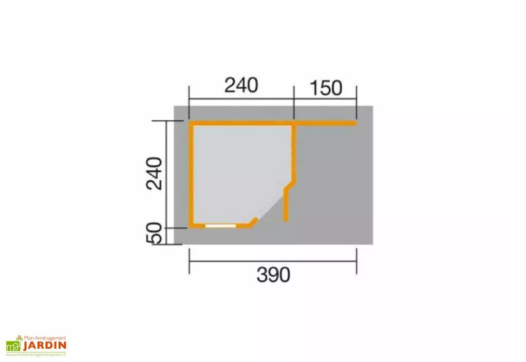 De fabrication allemande, votre abri de jardin en bois de haute qualité possède une porte de 0,81 x 1,73 m (l,h) située dans l’angle, et une fenêtre. Votre abri Fides possède un appentis de 1,50 x 3 m (l,h) sous lequel vous pourrez installer un salon de jardin ou des jardinières par exemple. L’appentis est livré sans plancher, et peut être installé à droite ou gauche.